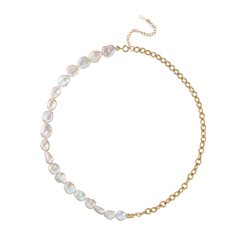 Half Baroque Pearls Half Chunky Gold Chain Necklace