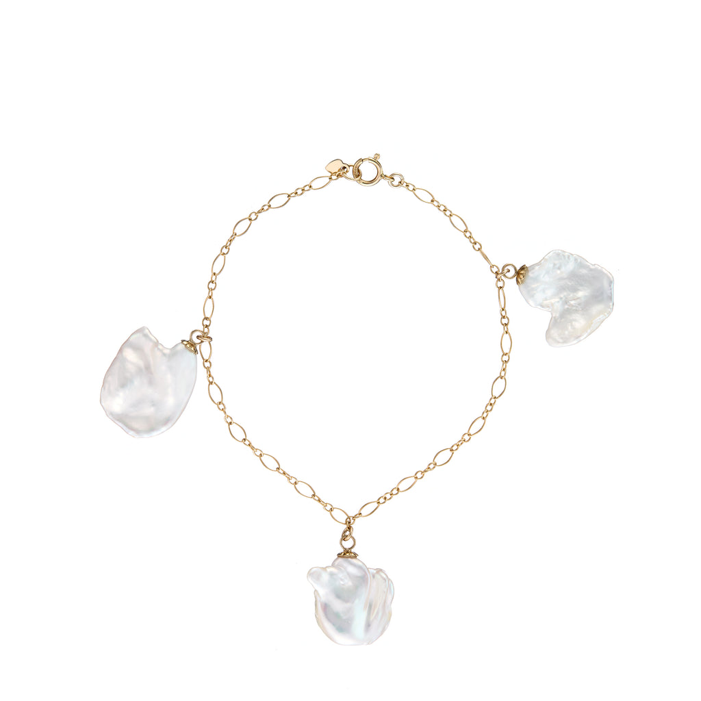 Three Keshi Pearl Bracelet | Dainty Gold