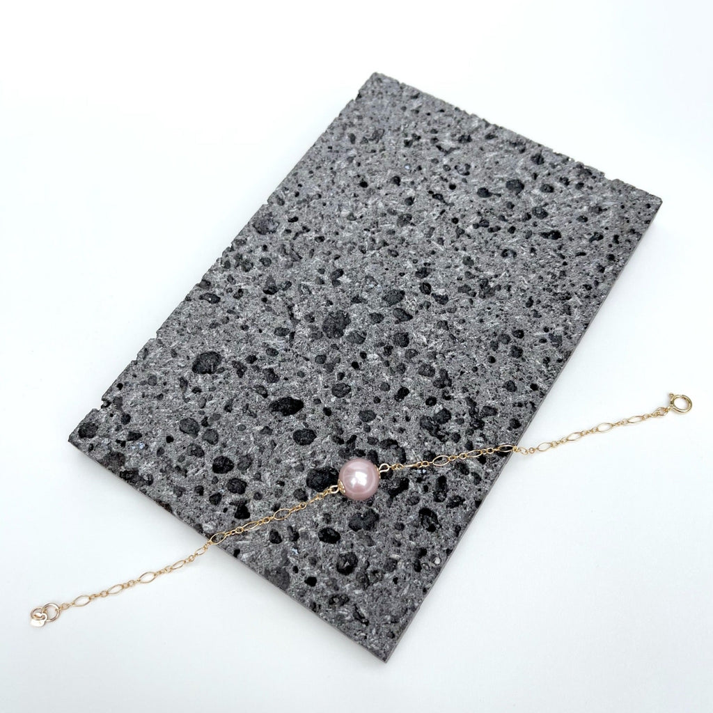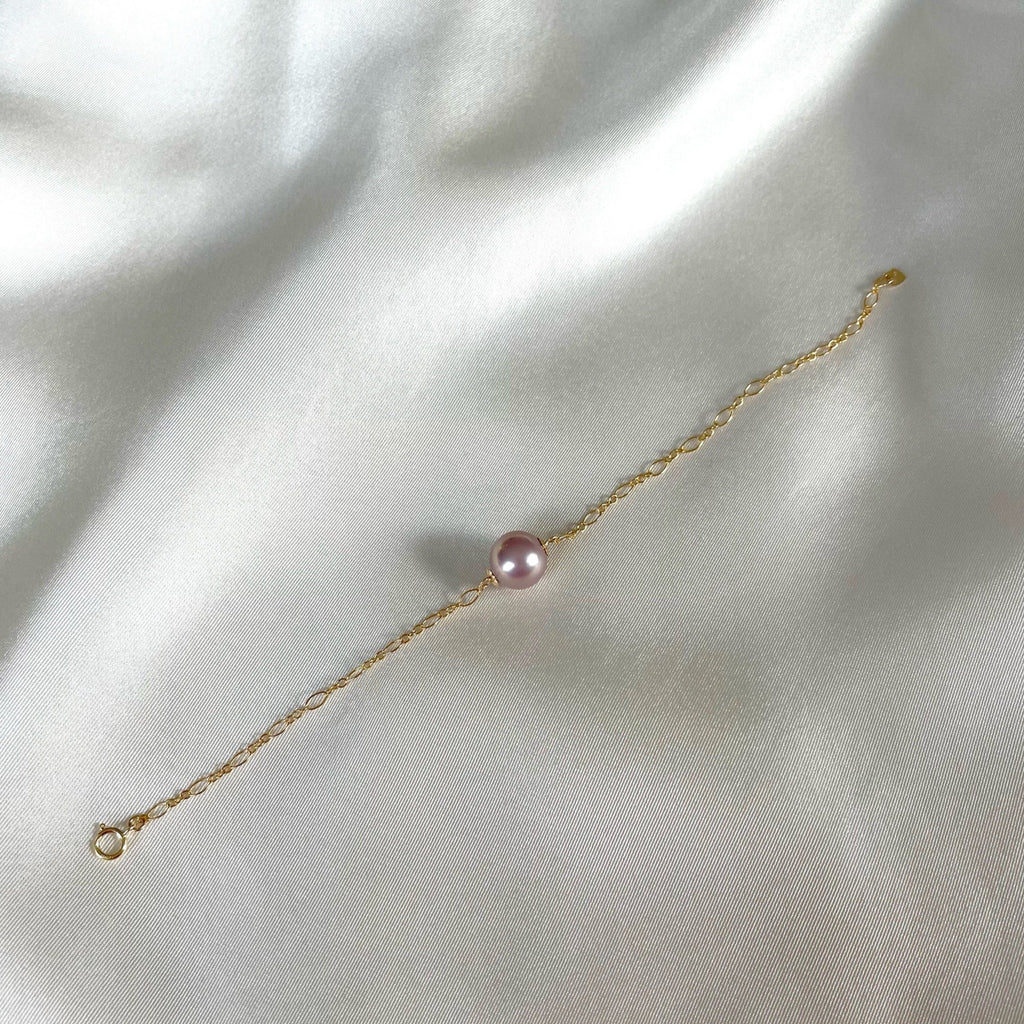 Handcrafted with an exquisite gold chain, this bracelet features a single large, natural lavender-coloured pearl, boasting exceptional lustre.