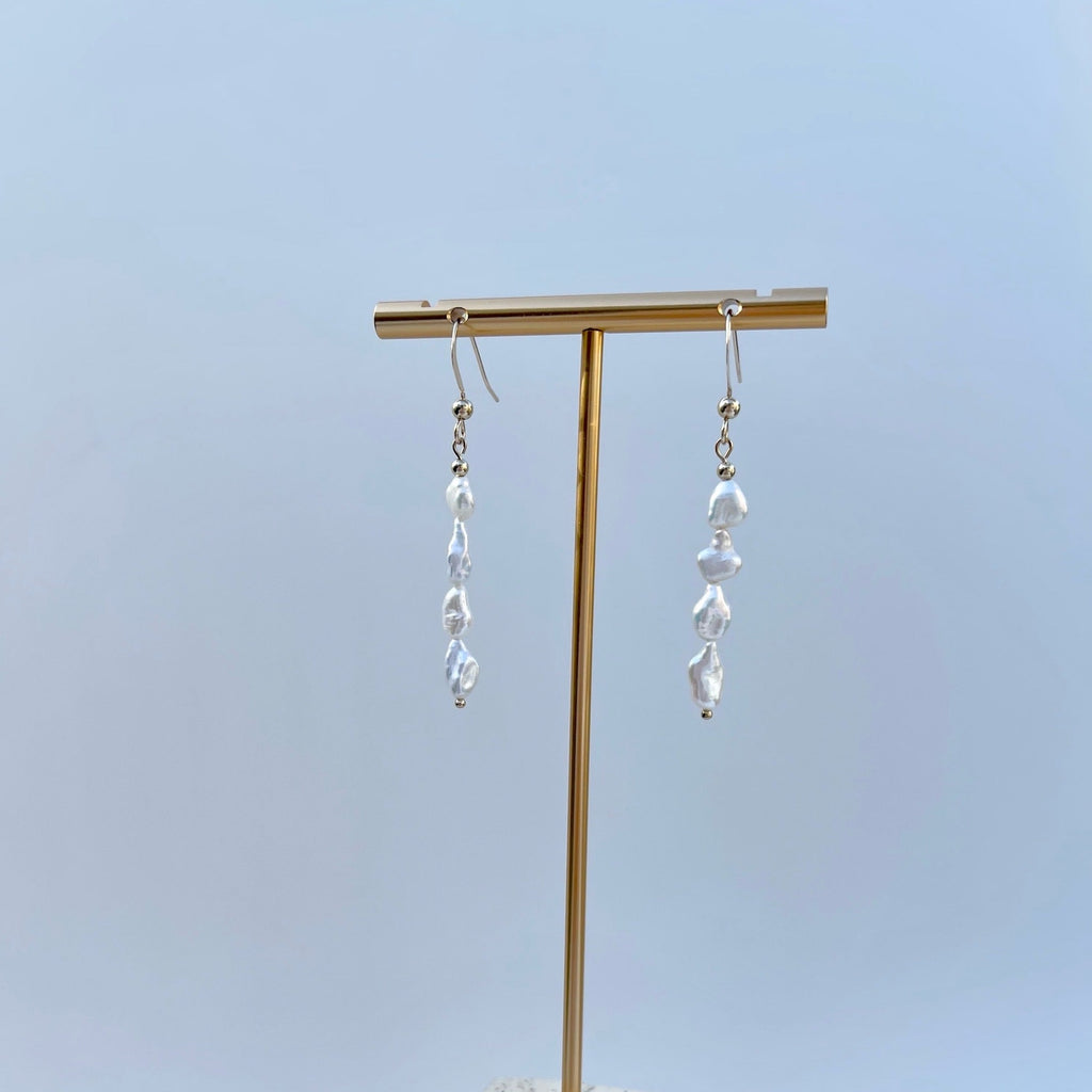 These natural freshwater Keshi pearl earrings celebrate the uniqueness of each pearl, symbolizing the one-of-a-kind beauty of the wearer.