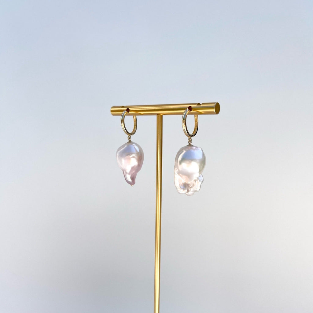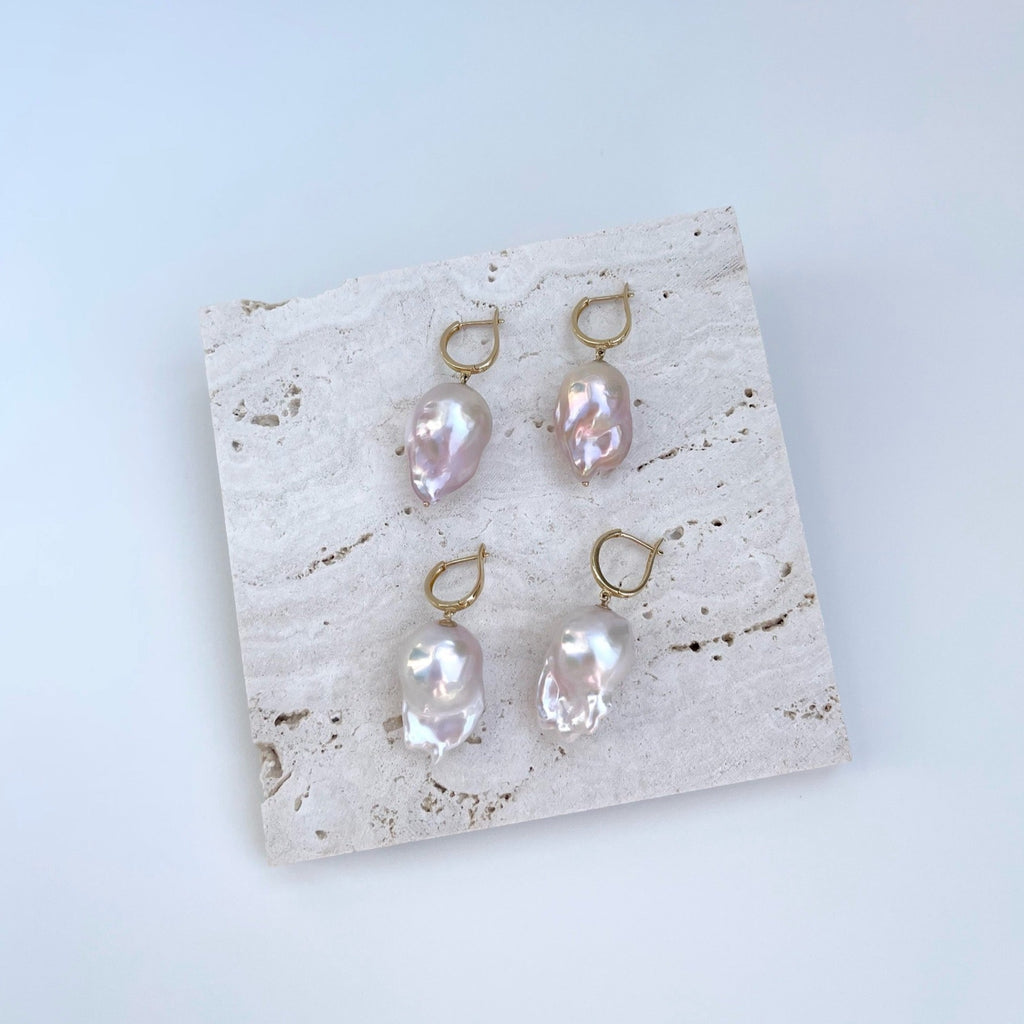 Large Baroque Pearl Earrings | 14 Karat Gold Lever Back