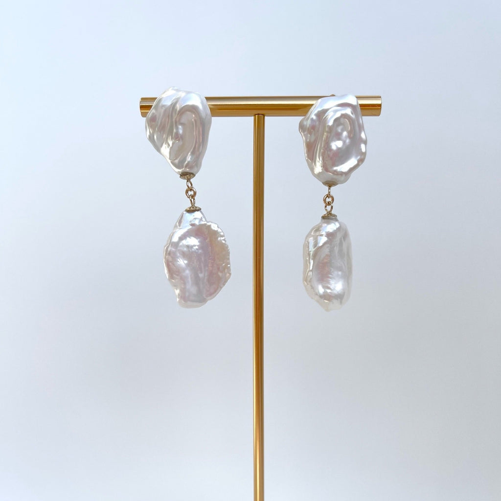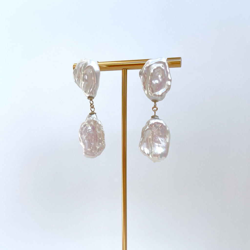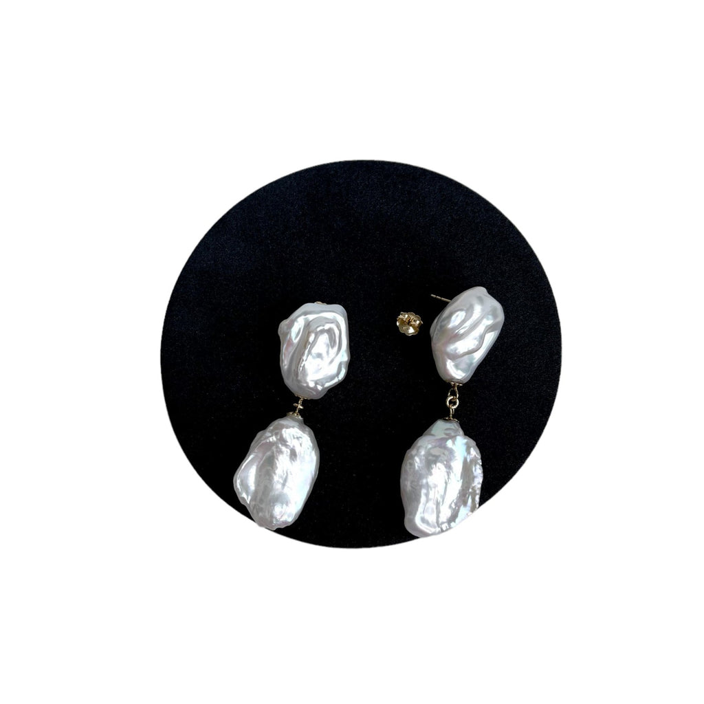 Experience the epitome of luxury and elegance with our Large Keshi Pearl Dangling Earrings.